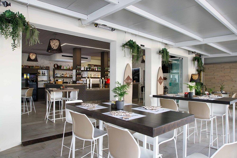 On the ground floor of the hotel, on the terrace overlooking the pedestrian area of Via Bafile, is QuBe Hamburgeria, a landmark in the social scene of Lido di Jesolo. QuBe stands for burgers and organic, zero-mile, D.O.P. food.